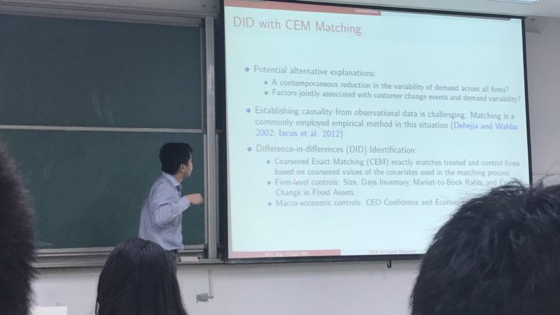 本次報告會,吳博士從一種新的視角分析了運營管理中的一個核心問題,即供應鏈中需求不確定性與牛鞭效應之間的關係。吳博士發現,傳統的供應鏈中企業內部評估的牛鞭效應在上遊是增加的,而上遊企業的需求不確定性實際上是減小的。為調解這一矛盾,吳博士假設企業可以通過管理客戶群體以平滑總體需求,並通過基於時間變化的供應關係進化以驗證這一假設。其研究結果發現:通過對供應商增加、減少和交換客戶的檢驗,供應商確實可以平滑其總體需求。這一研究為供應商通過調節采購方-供應商關係以減少牛鞭效應的影響提供新的研究視角。