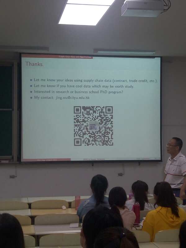 應我院畢功兵教授邀請,香港城市大學商學院助理教授吳靖博士於2018年9月20日至9月22日訪問我校爱游戏官方合作意甲 。訪問期間,吳靖博士與我院師生開展了一係列的學術交流,並做了題為“The Bullwhip Effect in Supply Networks”的精彩報告。我院畢功兵教授、上海交通大學趙文輝副教授等教師以及眾多學生參加了此次報告會。報告會由畢功兵教授主持。