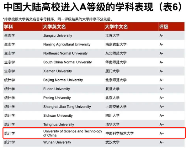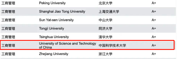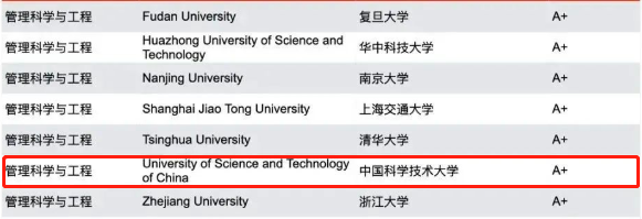 統計學、工商管理、管理科學與工程三個學科均為A+。
